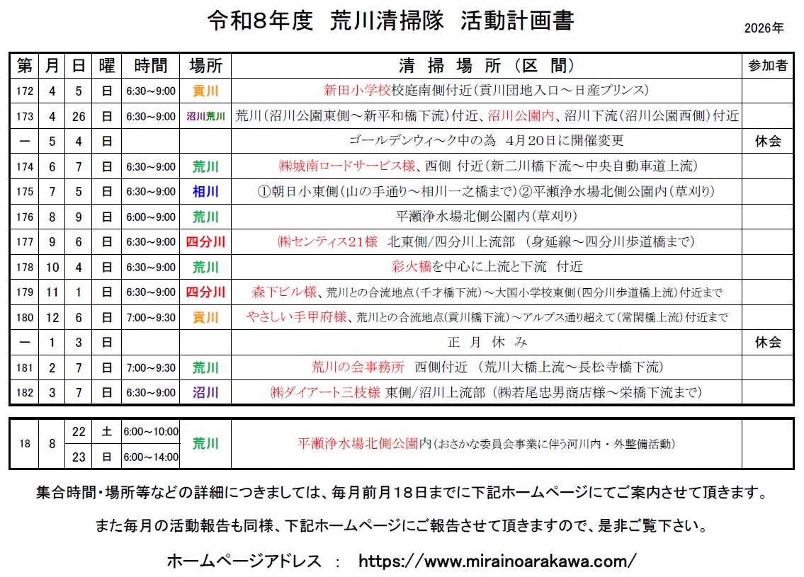 昨年度から清掃隊が新体制に転換し、今年度から段階的に新体制の方針を盛り込んできたため、運営的な変更もあってご迷惑をお掛けした面もございましたが、新年度からは新体制も3年目、更なる進化を目指しつつも円滑な運営に取り組んでまいりますので、
